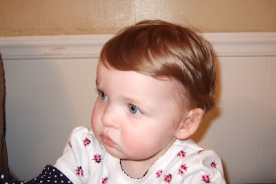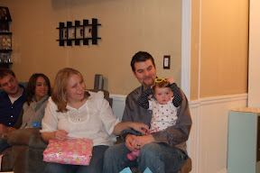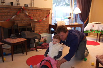 Here is Addy smashing her cake. A girl who brings her face to the cake rather than the cake to her face! Overall, I think the party went well - and that I spent way too much time decorating...If you look at the picture with Addy and Drew you can see the tablecloth I made...I probably should been conserving my energy and creativeness for the scrapbook I still have not worked on since she was three weeks old! I guess that will be the next project!